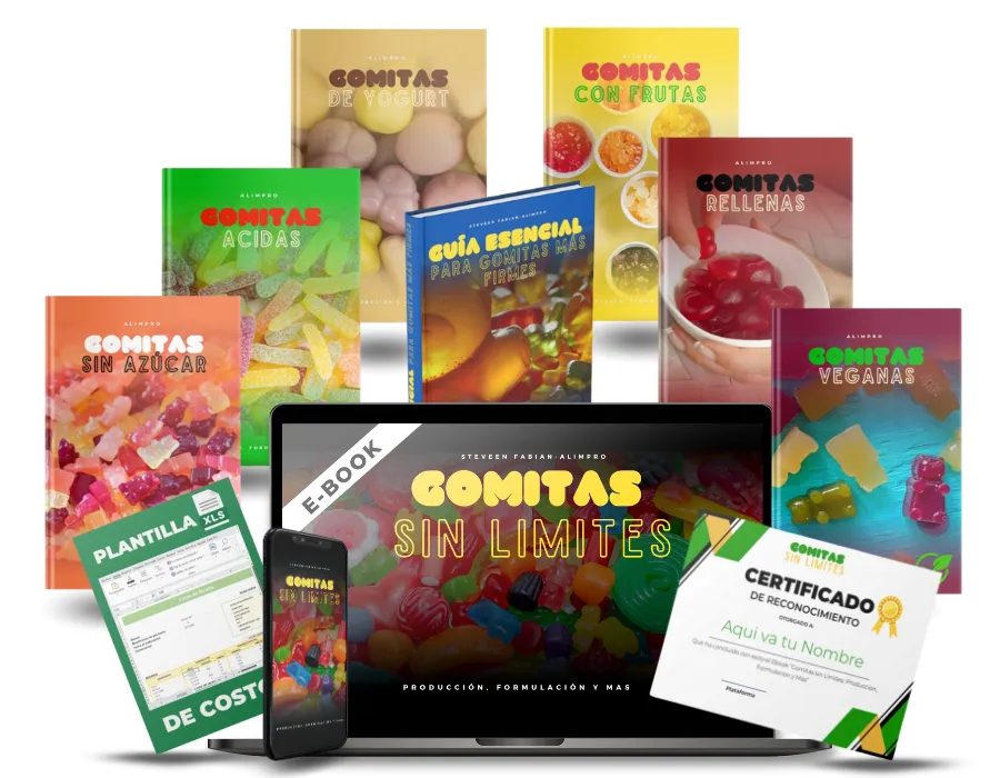 Apresento meu eBook «Gomitas Sem Limites» — neste eBook você encontrará o passo a passo que vai te levar a dominar a arte da FORMULAÇÃO de balas de gelatina.